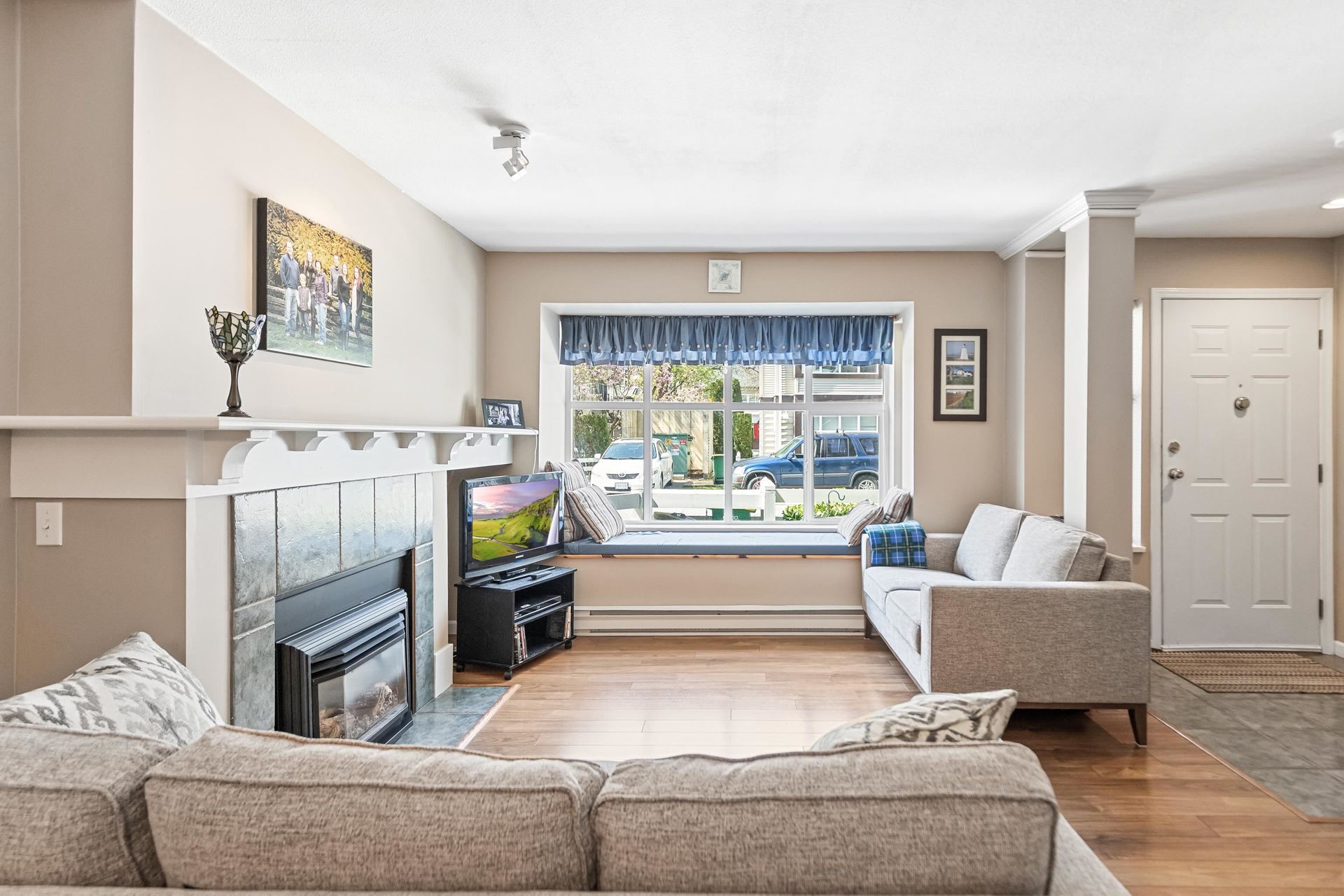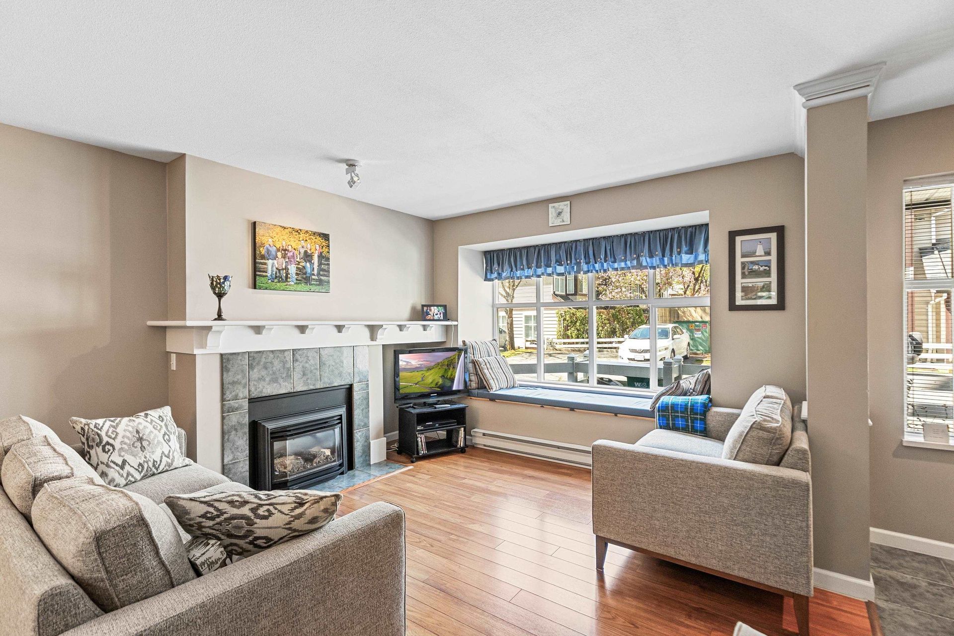 Galiano - Professionally renovated with new kitchen, quartz counters and appliances, updated flooring, nothing to do here but move in. This 2 bedroom, 2 level , 1 bathroom unit features a separate dining room, living room with new gas fireplace, and separate kitchen with eating area walking out to a level patio. Upstairs features a spacious primary bedroom with walk in closet and separate den/workspace, plus a second large bedroom. Cats and dogs are welcome, with some breed restrictions, BONUS 2 open parking stalls out front, and adjacent to the unit. All just steps to Alexander Robinson Elementary School, Save On Foods, Starbucks, Subway , Pharmacy, transit and more!