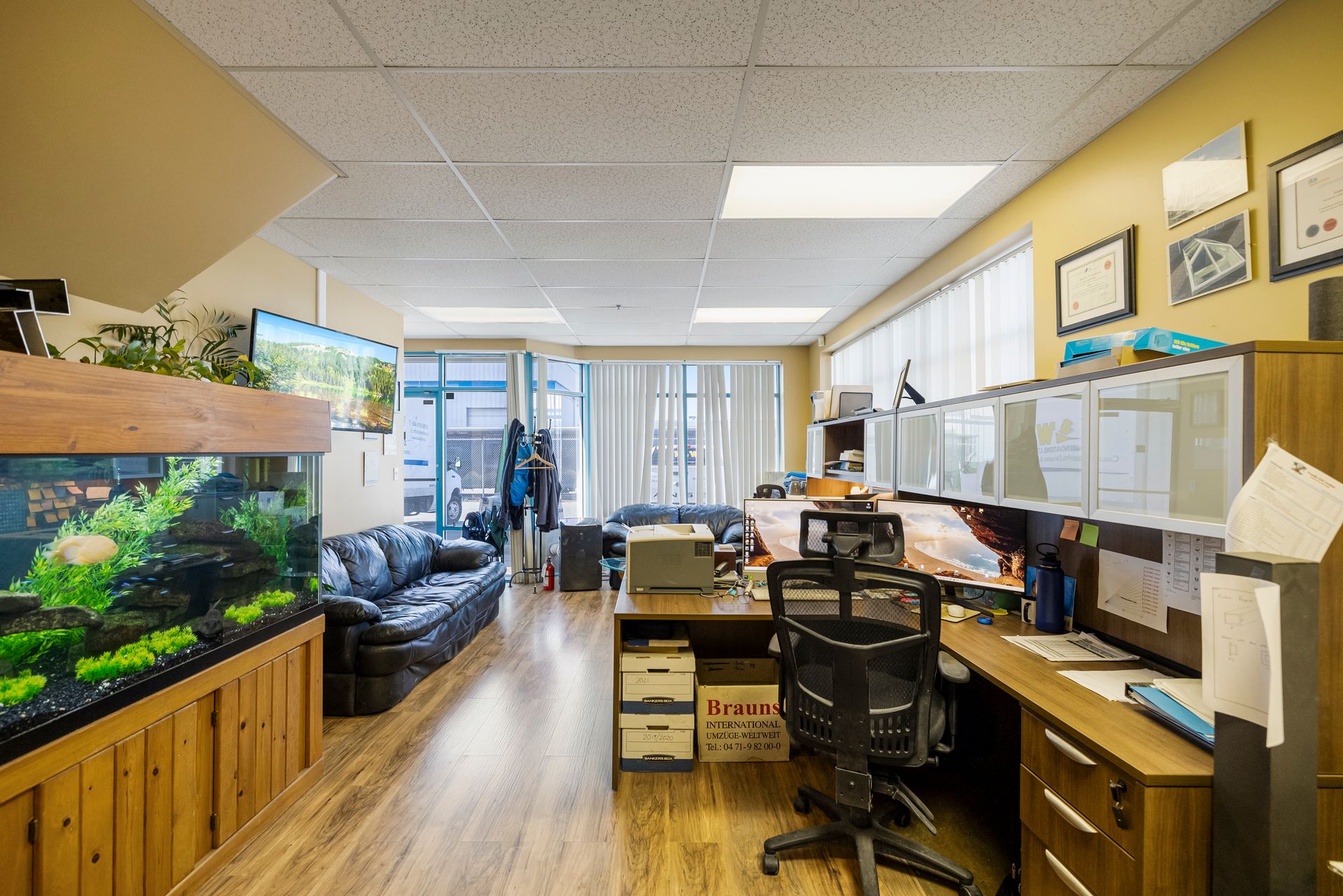 Prime Corner Unit 1,841 Sq.Ft. warehouse in a central location! Maximized for functionality and efficiency, this well-designed corner unit offers an ideal blend of office and warehouse space. The main floor features plenty of windows for an abundance of natural light, 415 Sq.Ft. of office space, 793 Sq.Ft. of warehouse space with a 22’1” ceiling height, a convenient two-piece bathroom, and a bonus side door entrance for easy access. Upstairs, you'll find 633 Sq.Ft…. of mezzanine space, open to the warehouse below, easily for conversion into additional office space if needed. The unit includes 3 designated private parking stalls, along with ample shared parking. Ideally situated near major transportation routes, including the Mary Hill Bypass, Pitt River Bridge, Port Mann Bridge, and the freeway. See photos for floor plan!