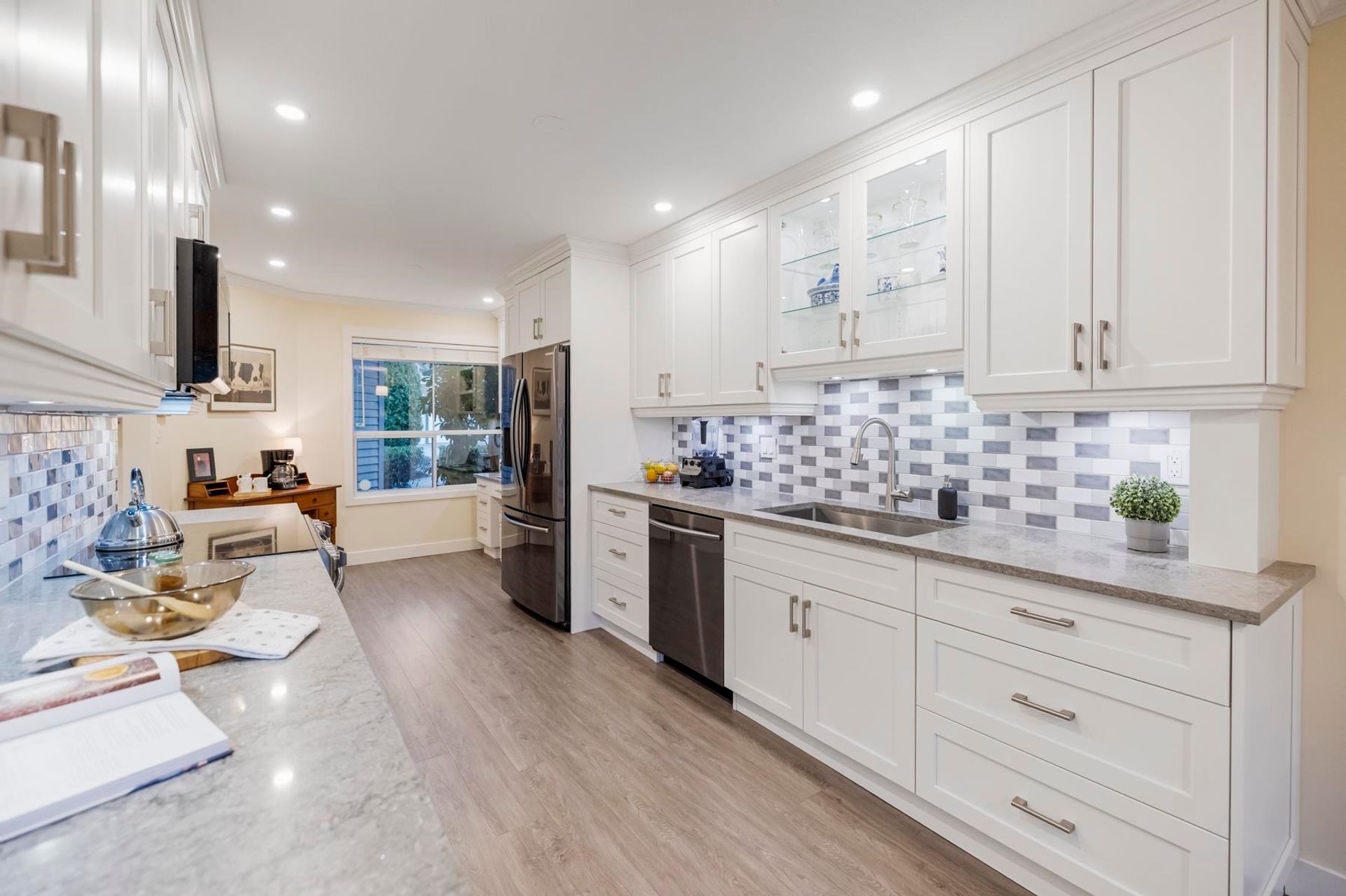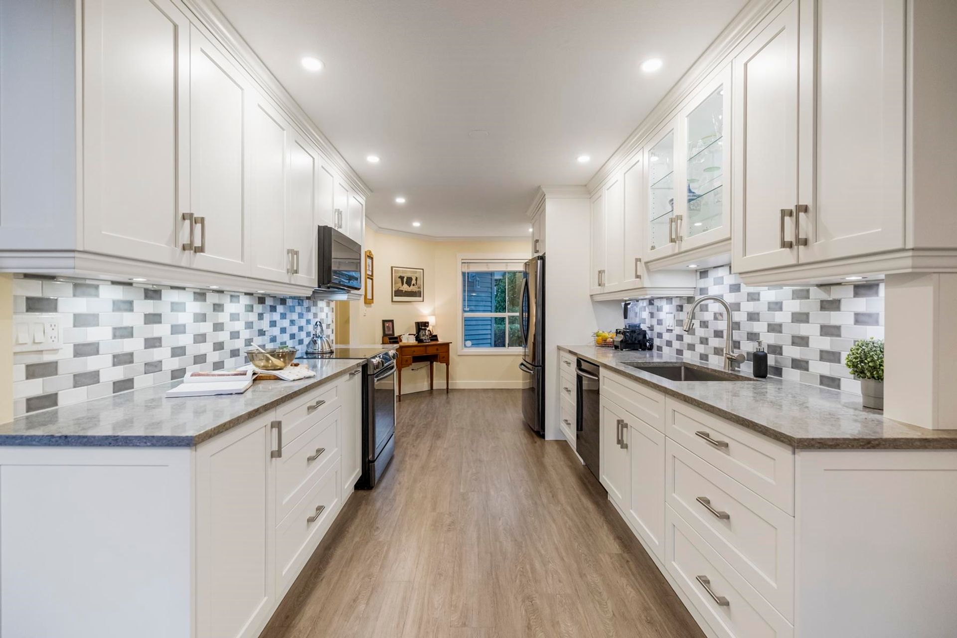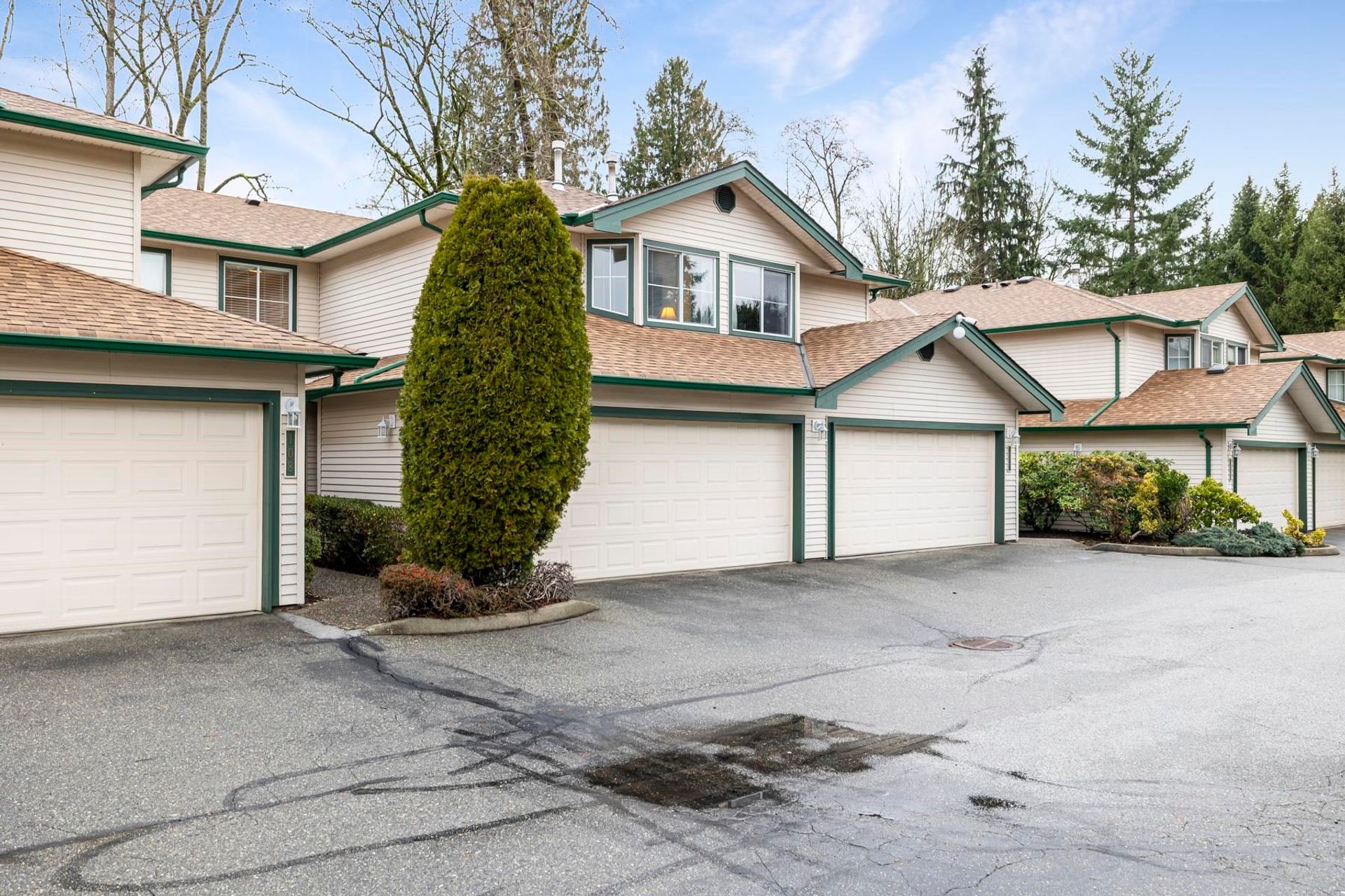 Creekside Estates! Guilford’s most sought-after complex. This meticulously maintained two-storey unit backs onto a protected serpentine creek. The functional layout makes use of every square inch of living space, while the vaulted ceiling in the living room and gas fireplace will make you feel right at home. Updates start with the professionally renovated kitchen boasts white shaker cabinets with specialty drawers, quartz countertops, black S/S appliances, updated bathrooms, and so much more. Located only steps from shopping, restaurants, parks, and schools. With the 1 hwy just minutes away, you can get anywhere in Metro Van or the Valley in under 20 min. This home offers the perfect blend of comfort, style, and location all in one package! Open House Sun, Feb 15, 1-3 PM