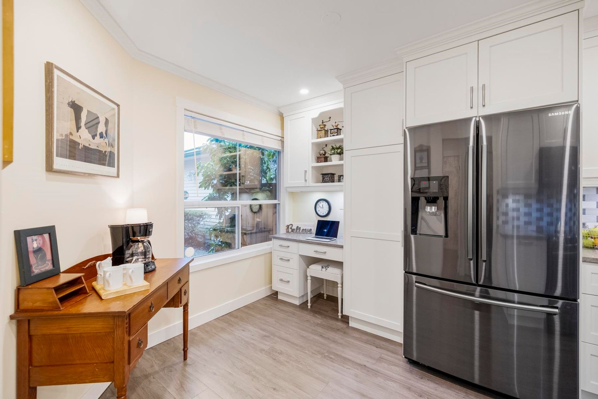 Creekside Estates! Guilford’s most sought-after complex. This meticulously maintained two-storey unit backs onto a protected serpentine creek. The functional layout makes use of every square inch of living space, while the vaulted ceiling in the living room and gas fireplace will make you feel right at home. Updates start with the professionally renovated kitchen boasts white shaker cabinets with specialty drawers, quartz countertops, black S/S appliances, updated bathr…ooms, and so much more. Located only steps from shopping, restaurants, parks, and schools. With the 1 hwy just minutes away, you can get anywhere in Metro Van or the Valley in under 20 min. This home offers the perfect blend of comfort, style, and location all in one package! Open House Sun, Feb 15, 1-3 PM