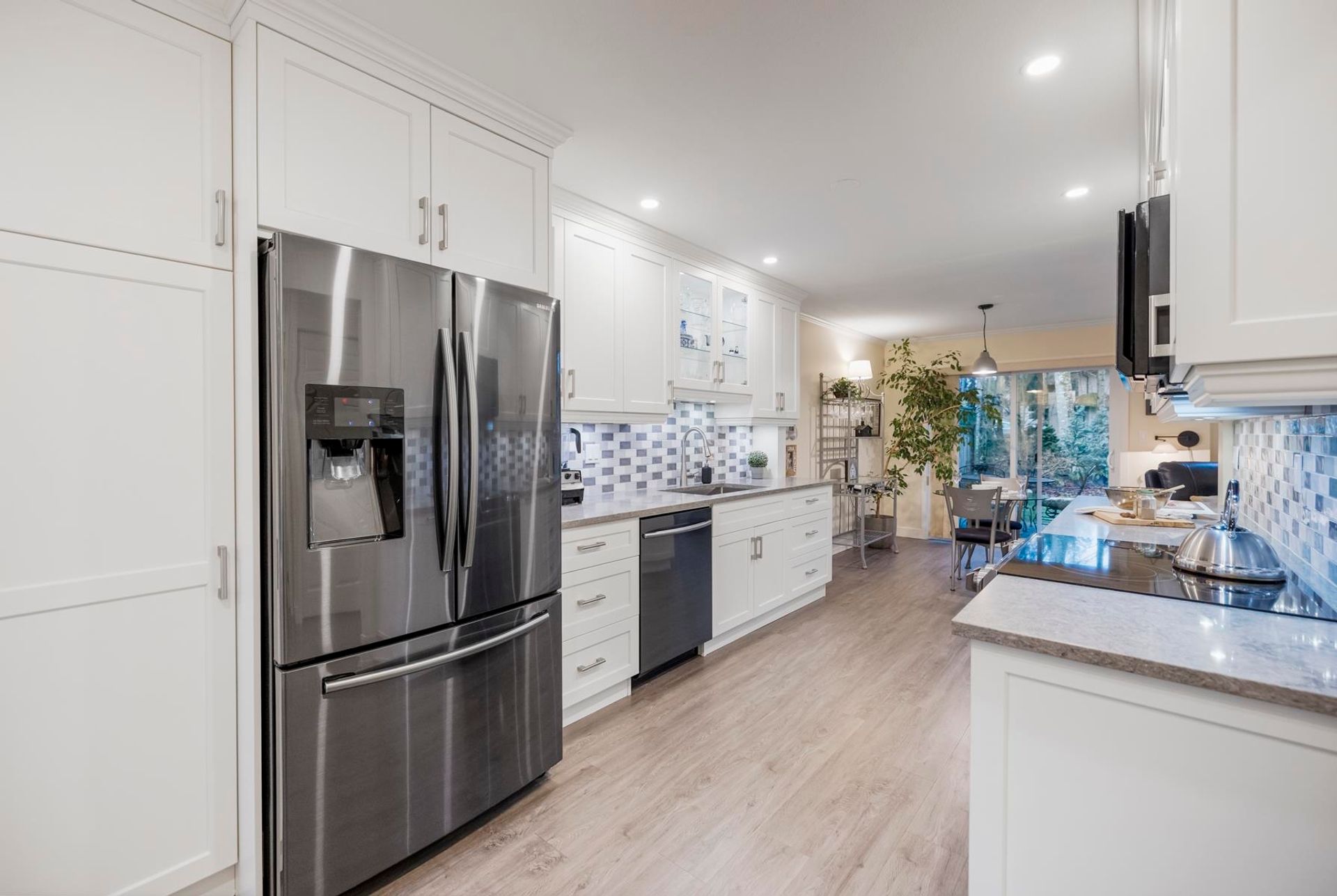 Creekside Estates! Guilford’s most sought-after complex. This meticulously maintained two-storey unit backs onto a protected serpentine creek. The functional layout makes use of every square inch of living space, while the vaulted ceiling in the living room and gas fireplace will make you feel right at home. Updates start with the professionally renovated kitchen boasts white shaker cabinets with specialty drawers, quartz countertops, black S/S appliances, updated bathr…ooms, and so much more. Located only steps from shopping, restaurants, parks, and schools. With the 1 hwy just minutes away, you can get anywhere in Metro Van or the Valley in under 20 min. This home offers the perfect blend of comfort, style, and location all in one package!
