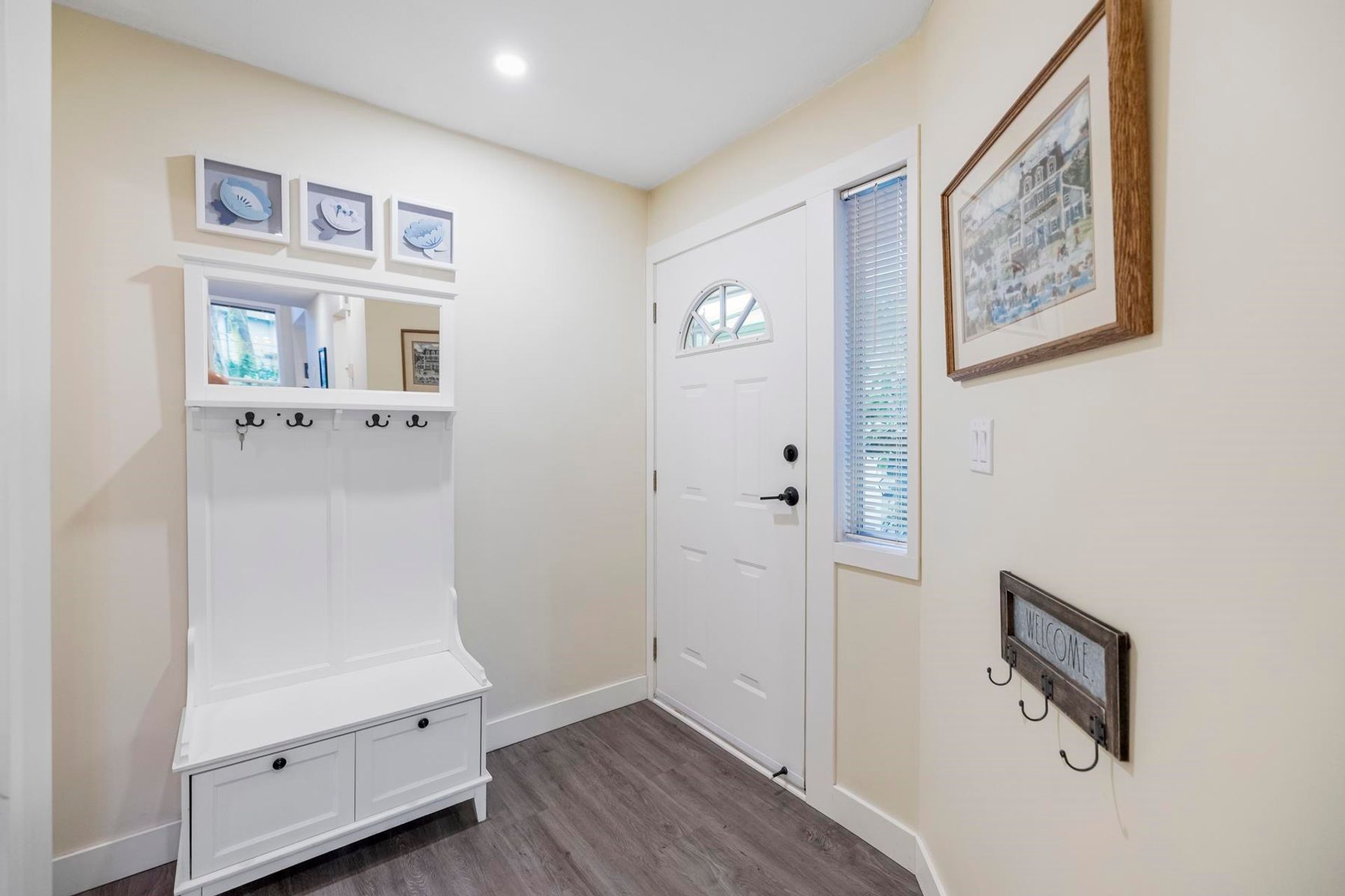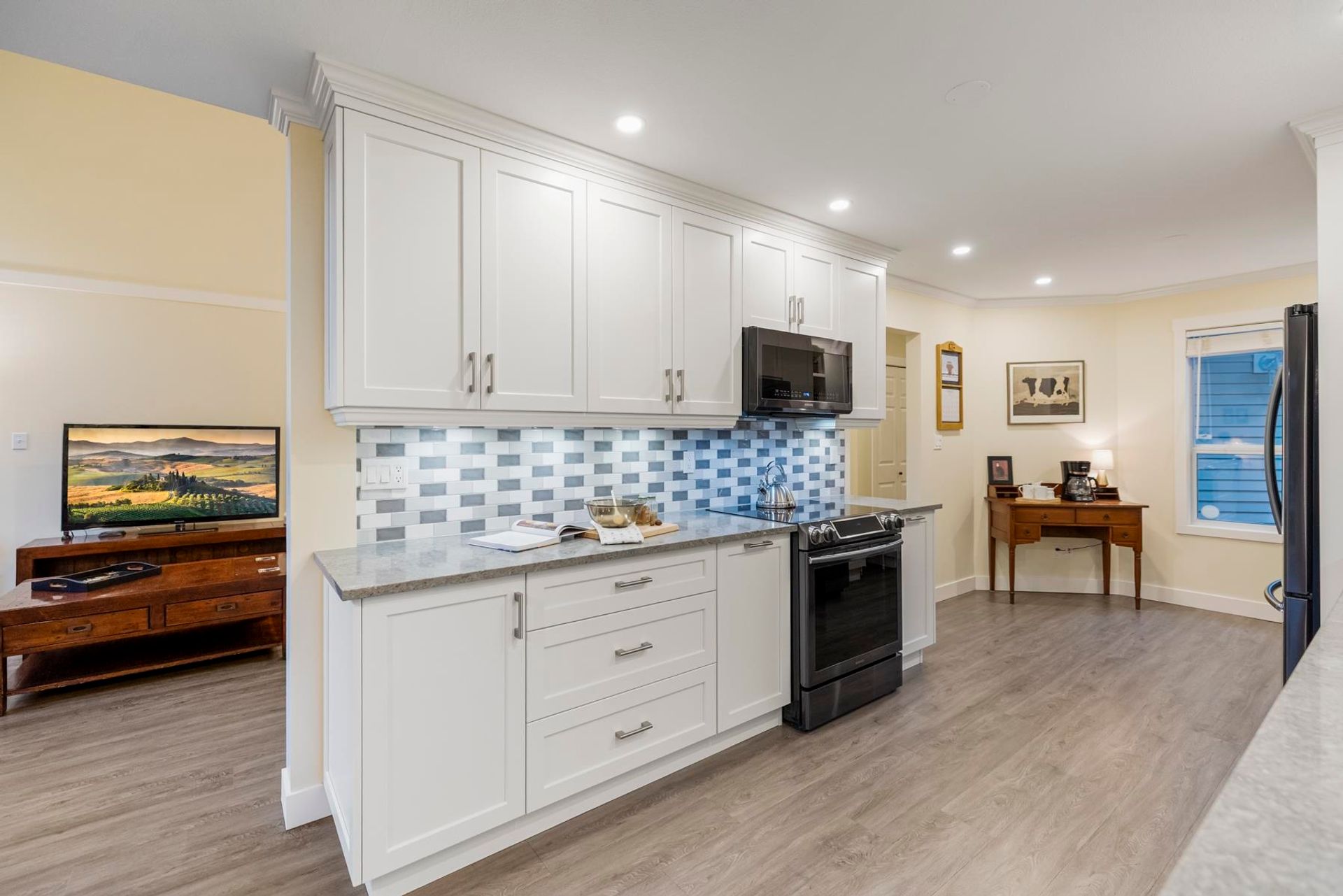 Creekside Estates! Guilford’s most sought-after complex. This meticulously maintained two-storey unit backs onto a protected serpentine creek. The functional layout makes use of every square inch of living space, while the vaulted ceiling in the living room and gas fireplace will make you feel right at home. Updates start with the professionally renovated kitchen boasts white shaker cabinets with specialty drawers, quartz countertops, black S/S appliances, updated bathrooms, and so much more. Located only steps from shopping, restaurants, parks, and schools. With the 1 hwy just minutes away, you can get anywhere in Metro Van or the Valley in under 20 min. This home offers the perfect blend of comfort, style, and location all in one package!