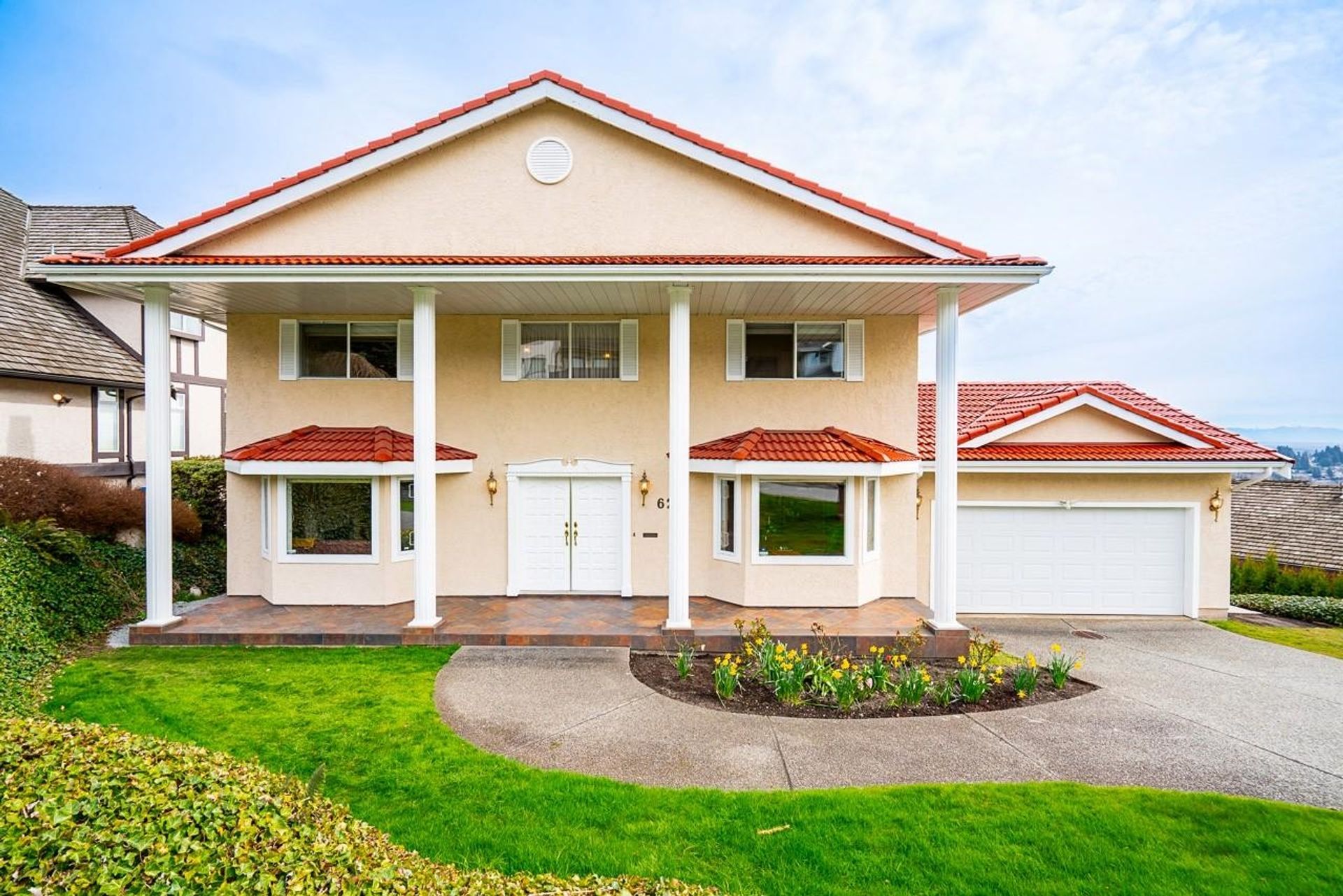 FIRST TIME ON THE MARKET! THIS ONE OF A KIND SUPER SPACIOUS, BRIGHT, CUSTOM BUILT COLONIAL STYLE HOME W/ GRAND COLUMNS & WIDE INVITING ENTRY W/ 17’ HIGH CEILING, BEAUTIFUL SPIRALING STAIRCASE & GRAND CHANDELIER. ENJOY BREATH-TAKING UNOBSTRUCTED PANORAMIC VIEWS OF GOLDEN EARS, MT. BAKER & CASCADE MOUNTAINS FROM MOST ROOMS! Large Formal Living, Dining & Family Rms + Large Office on the Main; Real Hardwood Flr & Crown Mouldings Thru-out. Beautifully Ren…ovated Kitchen w/Granite Countertops & Island, Sleek Backsplash, Gas Range, S.S.Appls + Large Eating Area w/Adjoining Family Rm & Large Sundeck, ALL OVERLOOKING THE SWEEPING MOUNTAINS & VALLEY VIEW! 4 Large Bds Upstairs w/Hardwood Flr. MASSIVE MASTER BD w/WALK-IN CLST, RENOVATED FULL ENSUITE & GORGEOUS MOUNTAIN VIEWS! Large, Bright Walkout Bsmt