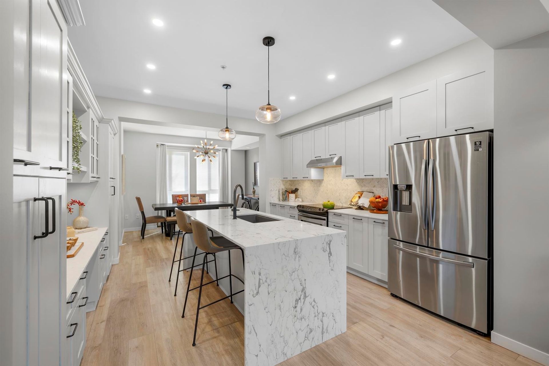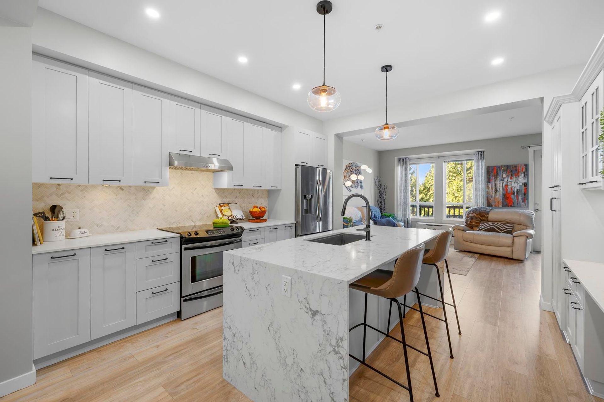 RARELY AVAILABLE unit backing onto Carnoustie golf course! Over $60k spent on recent Reno’s. The thoughtfully designed floor plan is larger than most similar units and features 1,754 Sq.Ft. of living space, 3 bdrms and 4 baths including a powder room on the main! Upstairs you will find a second bedroom with its own ensuite, while the primary suite boasts a private office area, walk in closet and luxurious ensuite of its own. There’s TWO outdoor living spaces, including backyard and a main floor balcony. Updates include NEW; kitchen, bathrooms (all 4), laminate floors, carpet, appliances, hot water tank. Bonus NEW roof! This location has it all. Steps from big-name box stores, restaurants, breweries, golf, Poco trail land quick access to Mary Hill bypass.